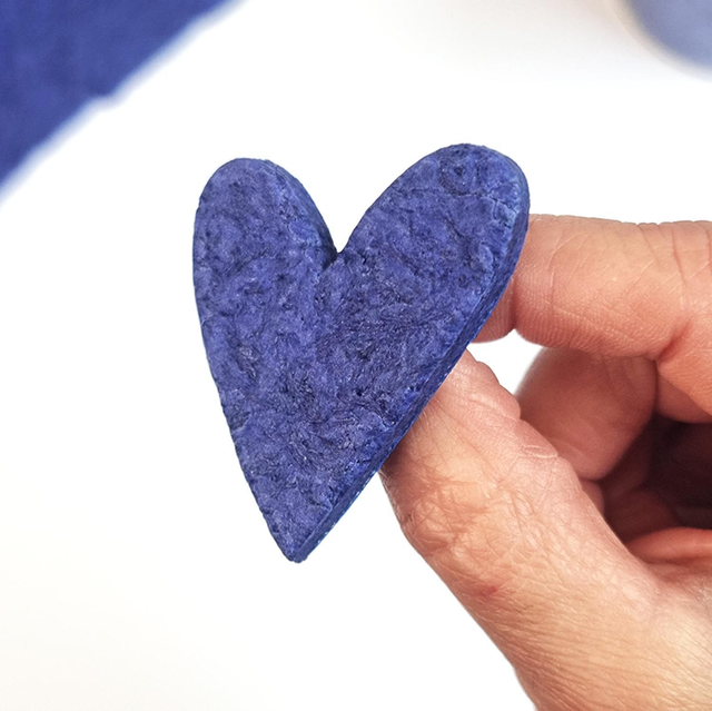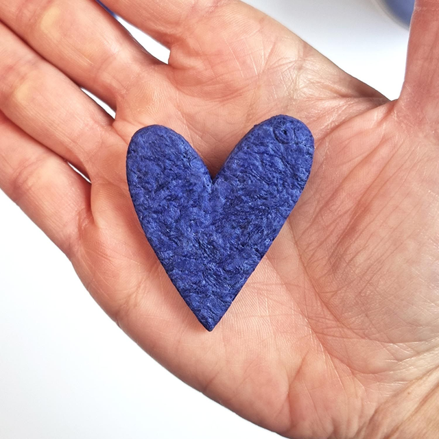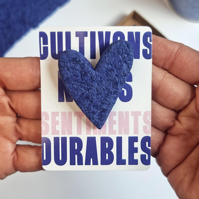 Chaque broche Recyc’Love est une pièce unique, façonnée à la main à partir de Pâte Textile, une matière innovante issue du recyclage de déchets textiles.