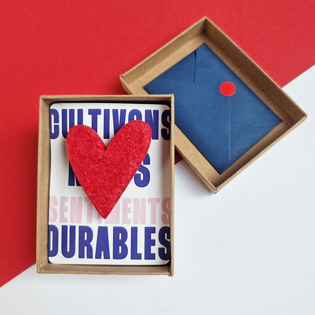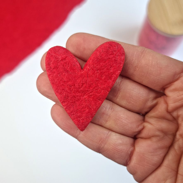 Chaque broche Recyc’Love est une pièce unique, façonnée à la main à partir de Pâte Textile, une matière innovante issue du recyclage de déchets textiles.